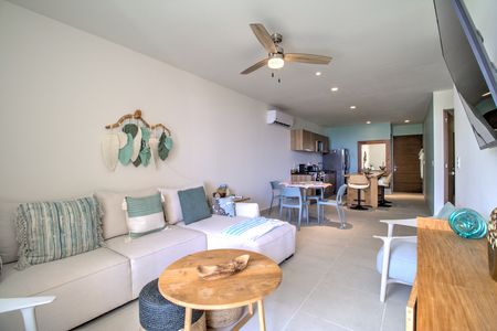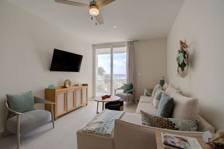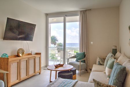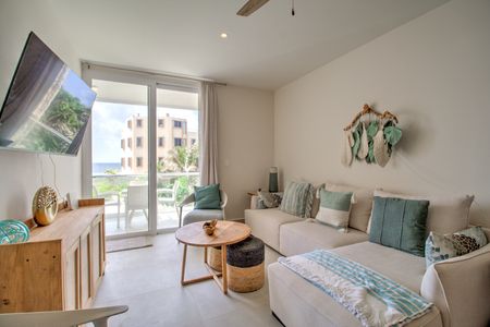 Condo de 2 recamaras con vista al mar desde la sala y la habitación principal.