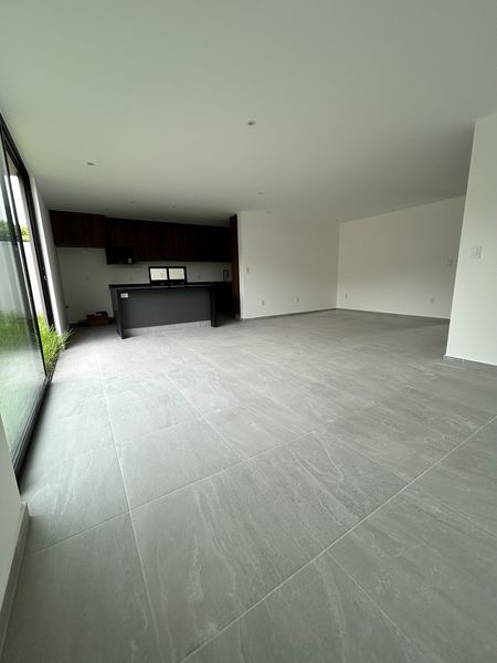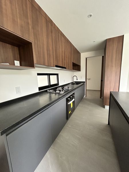 Cocina abierta con barra y acabados de lujo, alacena de muy buen tamaño, área de lavado ventilada, pasillo lateral hacia el jardín.