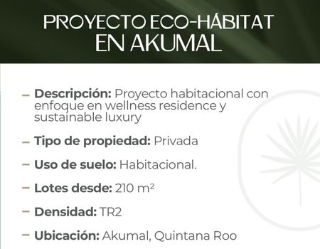 Este es nuestro proyecto de Akumal. También hay lotes de diferentes tamaños. Igual en la última ficha encontrarás el precio de lista.