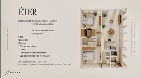 -Construcción: 88 m2 interiores, 12.6 estacionamiento: 12.6 mt2 , bodega: 1.800 mt2 ,Total: 102.400 mt2.