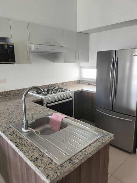 - Cocina equipada con estufa, campana, refrigerador y gavetas superiores e inferiores
