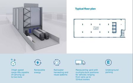 Cuenta con un patio de maniobras para que puedan descargar camionetas o un tráileres de 53 pies.