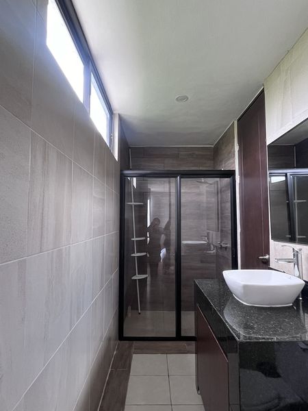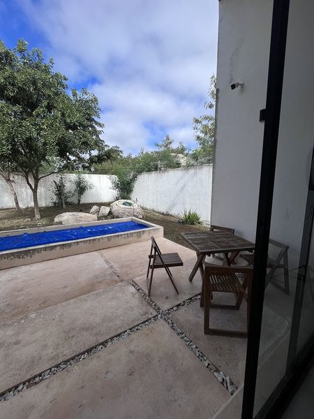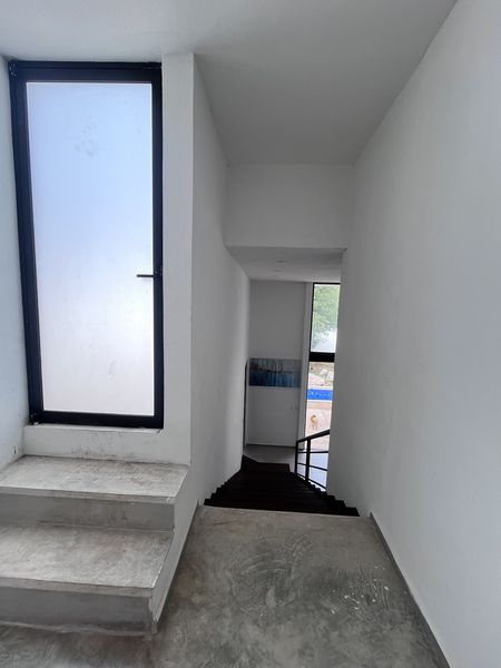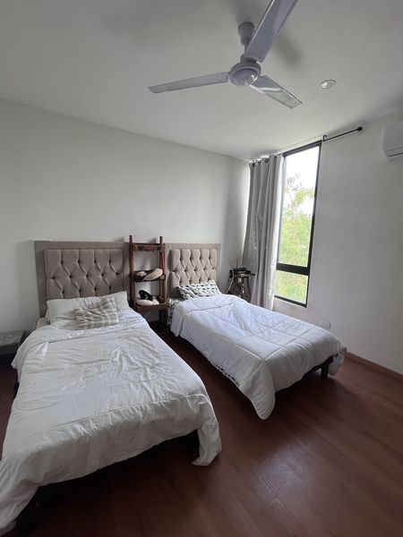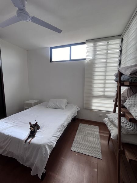 - Recámara principal en planta baja con baño completo, closet de pared y vista al patio.