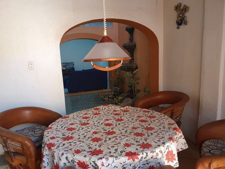 Casa dentro de condominio horizontal, ingreso con vigilancia, amplios jardines y alberca en área común, recolección de basura, espacio para dos autos, tres recamaras con A/A, ventiladores, cocina , patio interior con fuente, área de juegos, área de gimnasio