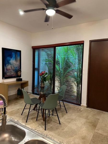 Hermosa Villa de 2 recámaras ubicada en Rue Villas Cholul; pequeño residencial con vegetación abundante, buena conectividad y excelente mantenimiento. La Villa se entrega equipada y amueblada, lista para habitarse.