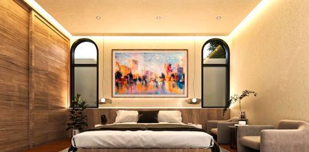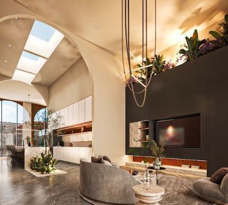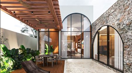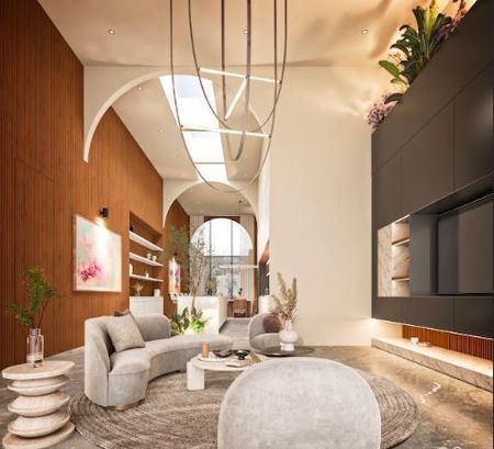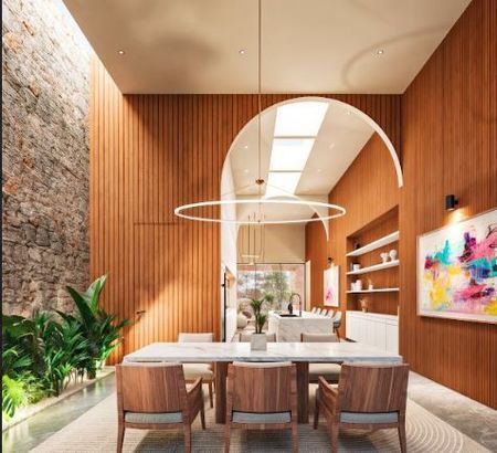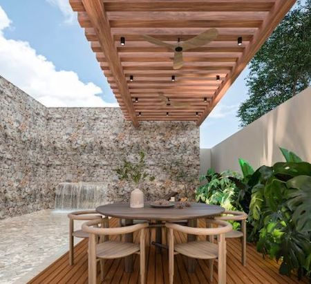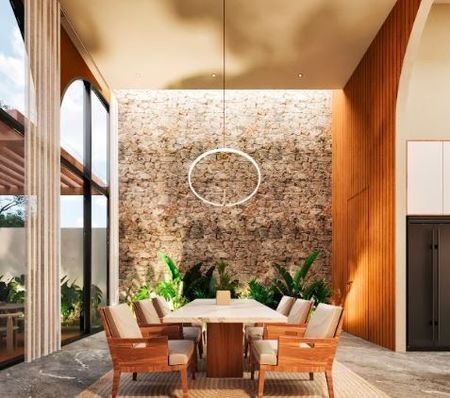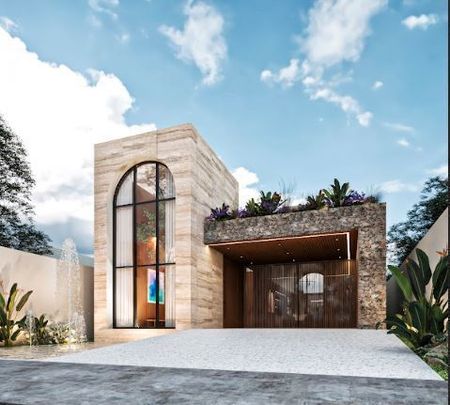 dobles alturas , pronunciadas curvas ,acabados en chukum , piedra natural y amplias jardineras que dan vida y un estilo único a la fachada e interiores; además de ser un Smart Home controlada desde la app de tu teléfono.