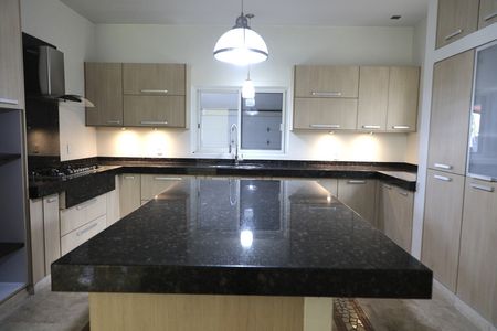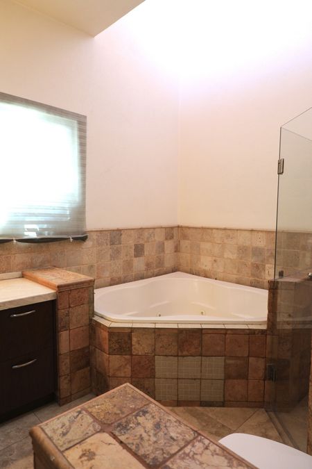 La cocina es moderna y funcional, equipada con amplias alacenas, cubiertas de granito negro y una isla central perfecta para cocinar o socializar. Los baños incluyen detalles en piedra natural y una relajante tina de hidromasaje en esquina.