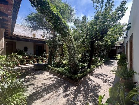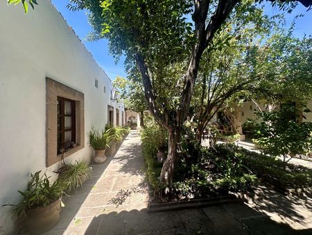 Casa Colonial de una planta con estructura rectangular y patio central rodeado por todas la habitaciones y por columnas de cantera.