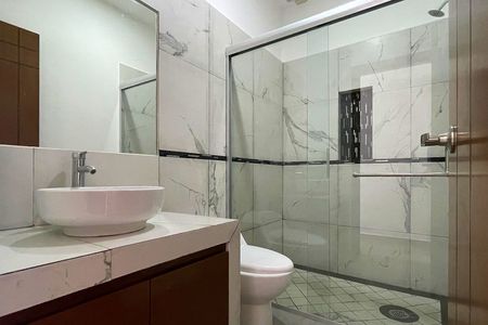 En la planta alta se cuenta con tres recámaras con baño completo, dos de ellas closet y baño completo. La principal con vestidor y baño con doble lavabo. Esta última tiene acceso a un balcón con vista al jardín. Todos los baños de la casa con cristal templado.