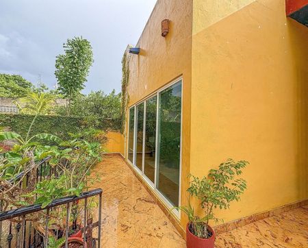Su diseño de una sola planta ofrece techos altos, espacios abiertos y una distribución cómoda y funcional. Cuenta con terreno excedente para tener un jardín enorme o expandir la construcción.