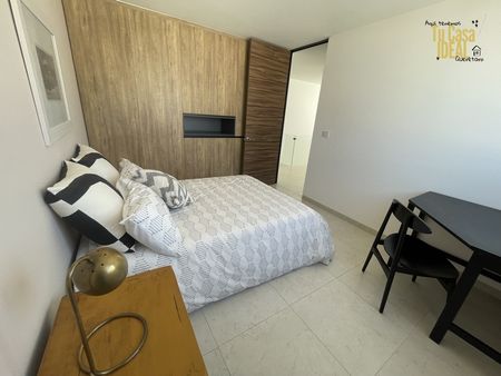 Cocina equipada con barra de cuarzo, closets, canceles, mueble de abajo del lavamanos y mosquiteros, bar y escritorio