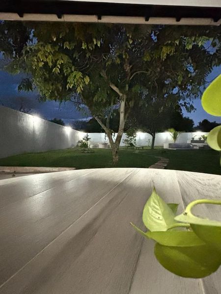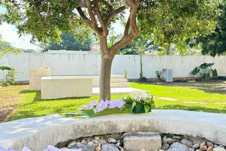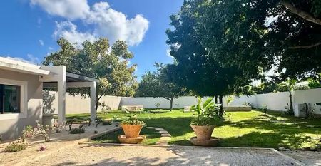 El jardín tiene árboles frutales y una ceiba de 15 metros de altura.