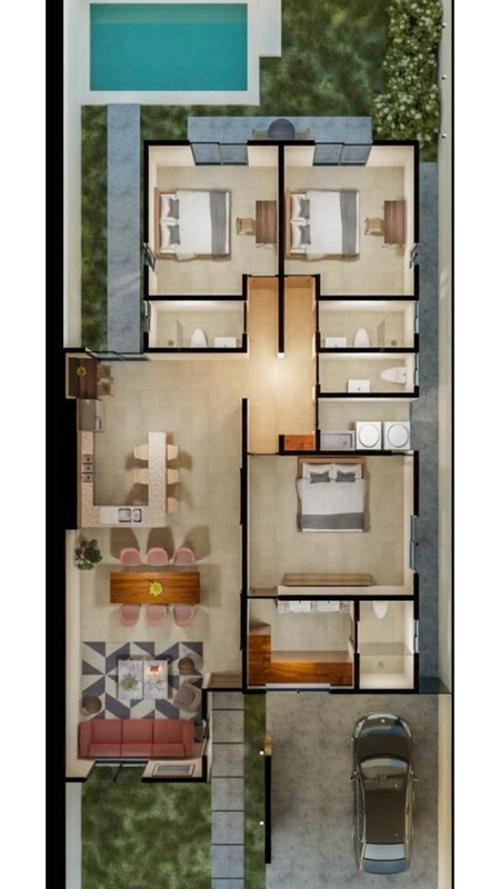 A solo 6 minutos del periférico de Mérida la casa esta diseñada para vivir un entorno tranquilo, desarrollado en una zona habitacional urbanizada y en constante crecimiento, rodeada de servicios y vialidades, a 15 minutos de la playa Chicxulub.