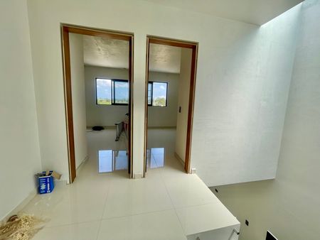 En planta baja encontrarás una cocina moderna, comedor, jardín con área de lavado techada y cochera para dos autos. En planta alta, tres recámaras: las secundarias comparten baño y la principal cuenta con vestidor para mayor comodidad.