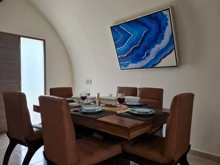 Conoce esta casa ecológica distribuida en una planta con roof top, amueblada, equipada, con A/A, terraza techada, jacuzzi y páneles solares a 20 minutos de la ciudad de Cancún. Excelente ubicación para realizar todo tipo de actividades, ideal para disfrutar en familia.