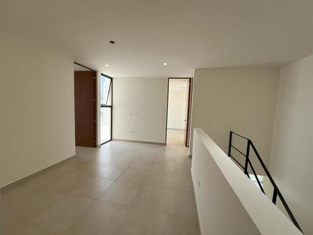 En la planta alta, hay una sala de TV o family room, un clóset de blancos, y tres recámaras, cada una con clóset vestidor y baño completo. La recámara principal destaca con un baño que incluye doble lavabo.