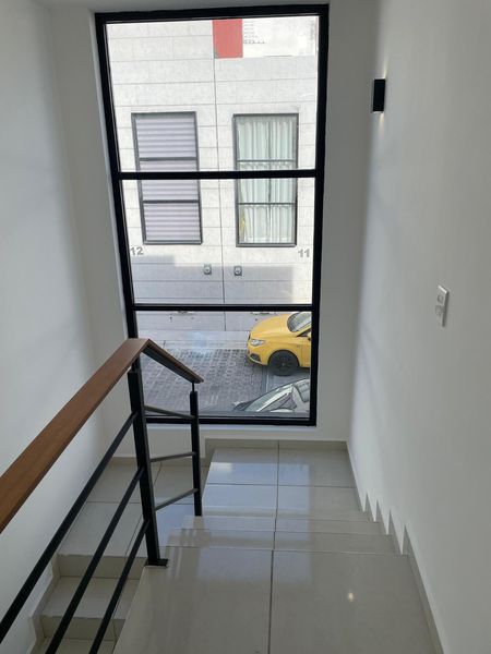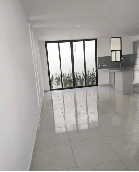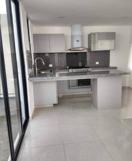 Planta baja: cochera para 2 autos, sala–comedor, cocina integral, ½ baño y jardín posterior
