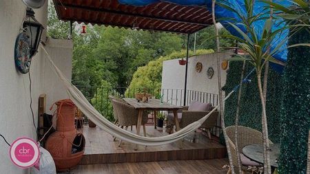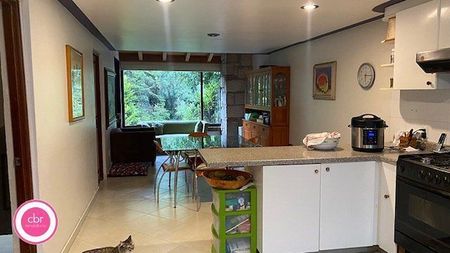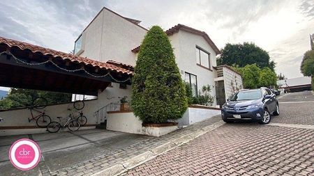 Casa en Condominio Las Haciendas con doble filtro de seguridad y vista totalmente verde al Parque Tarango con un jardín muy lindo con terraza, , 4 recamaras, 4 baños completos, 2 medios baños, cuarto de servicio con baño completo, un gym, una sala informal con chimenea con salida al jardín, sala, comedor, cocina con antecomedor y family con salida a la lavandería y tendedero.tres lugares de estacionamiento, dos bodegas. El conjunto tiene áreas comunes como: salón de fiestas, juegos infantiles y cancha de usos múltiples.