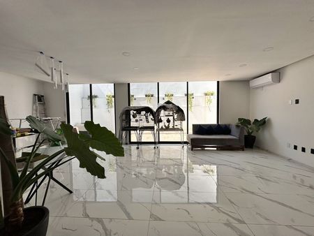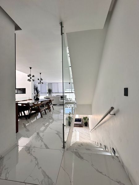 Incluye aires acondicionados, cuenta con cristal templado en escaleras, pisos de porcelanato de 1.20 x 60 cm.