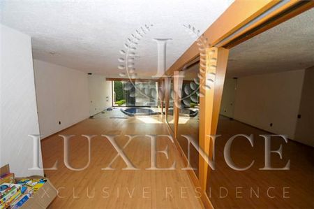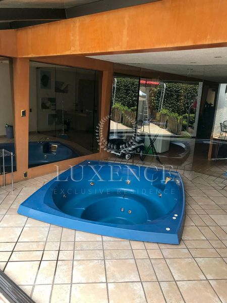 En el exterior, un jardín de aproximadamente 50 m² te invita a disfrutar de momentos al aire libre. La palapa con asador y el jacuzzi para 10 personas hacen de esta casa un lugar ideal para reuniones y relajación. Además, cuenta con gimnasio, estudio, sala de TV y una fuente interior ubicada al centro de la casa que aporta un toque de serenidad y diseño.