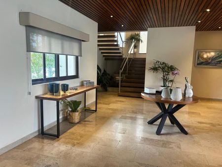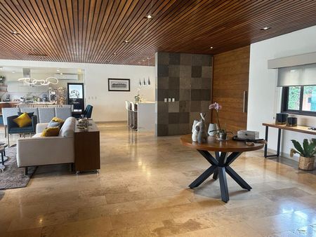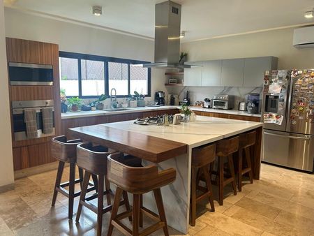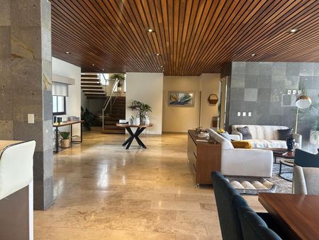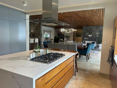 Con acabados de gran calidad como carpintería de nogal americano en closets, puertas, plafones y escalera.