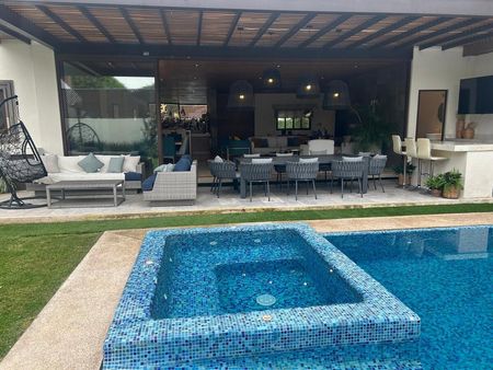 En la terraza, su jardín, alberca y Jacuzzi los cuales están climatizados, la casa crea un ambiente para compartir con los amigos y la familia.