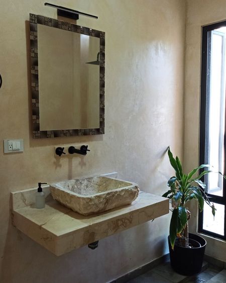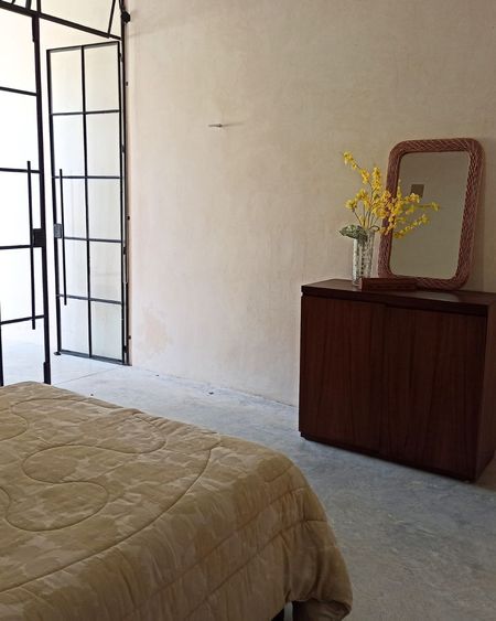- Pisos de concreto pulido de estilo industrial y paredes con acabado tipo chukum.