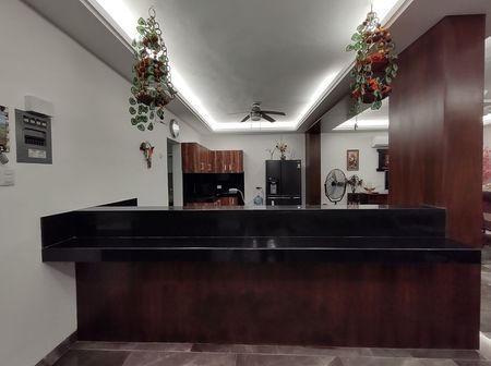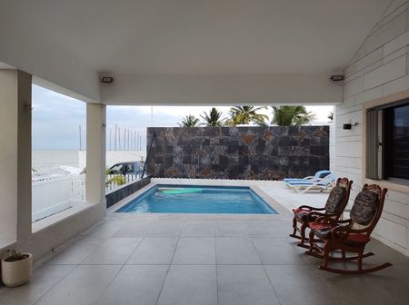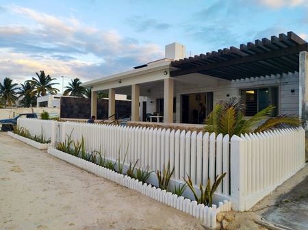 Casa completamente amueblada, con acabados de granito negro en la cocina, puertas de caoba, en todas las ventanas tienen mosquiteros, protectores y persianas anticiclónicas, terraza con vista al mar, piscina iluminada con acabado cero mantenimiento con regadera en la parte frontal, cajillo con luz indirecta en todas las habitaciones, totalmente climatizada y equipada con ventiladores de techo, los compresores de A/C con casetas de protección, calentador eléctrico, cámaras de seguridad, portón eléctrico, pozo de agua dulce, 2 cisternas, 16 paneles solares y techos impermeabilizados.