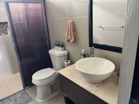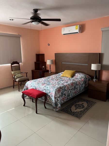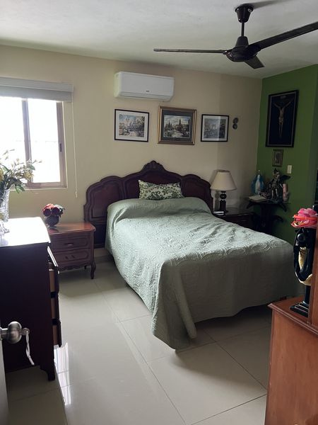 La casa tiene en planta alta 3 recámaras con aire acondicionado. La principal con baño y pequeño vestidor. Las otras 2 comparten baño completo.