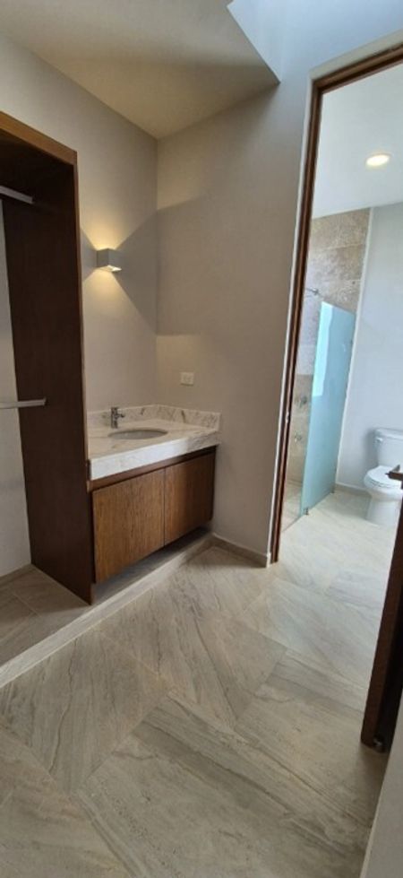 Planta alta: Recámara principal con terraza, clóset vestidor y baño.