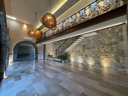 -Aires inverter en todas las habitaciones, closets y estudios.-Elevador con capacidad para 300 kg.-Equipo de filtrado para piscina automatizado y sistema PV3. No requiere que vayan a aspirarla y se puede controlar desde el celular, tanto como luces, fuente, programación y monitoreo de datos.-Jardín con diseño de paisajismo y sistema de riego automatizado marca HUNTER.-Internet de fibra óptica TELMEX-Domótica y compatibilidad con Alexa.-Repetidores de Wifi en la casa.-Iluminación exterior automática por horarios y sensores de movimiento en cochera y escaleras interior.-Equipo de cámaras tipo domo HD marca DAHUA.-Videoportero-interfónen acceso principal comunicado con cocina y recamara principal. Todos los cuartos están intercomunicados y cuentan con teléfonos inalámbricos.-Bocinas marca SONOS conectadas al Wifi en planta baja.-Todas las salidas de TV de la casa tienen cable directo de internet y ducteriaen muro para ocultar cablería.-Tanque de gas de 180 litros marca TATSA con llave para llenado a nivel de calle (No tienen que subir al techo los de la compañía de gas)-Planta de emergencia marca GENERAC de gas capacidad de 19.5 KW con tanque estacionario de 500 litros independiente al de la casa marca CYTSA-Calentador de gas depósito 5 servicios marca CALOREX-Sistema de presión hidroneumático Easy box 2hp con suavizador base a sal y barra antisarro.-Cancelería línea europea serie 150 eurovent color madera en toda la casa.-Pisos de mármol travertino-Luminarias led en toda la casa.-Lavabos de toda la casa son de mármoles finos o piedra dependiendo de su ubicación.-Regaderas en planta alta son tipo teléfono marca DELTA satinadas.-Llaves de Lavabos marca GROHE.-Cisterna Rotoplas con capacidad para 2,800 litros y tinaco en azotea de 1,100 litros para uso de emergencia.