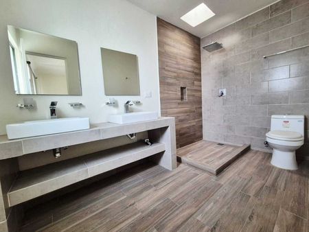 Planta baja, cochera para 2 autos, medio baño para visitas, sala, comedor, jardín, cocina muy amplia nueva, área de lavado techada, excelente iluminación natural.