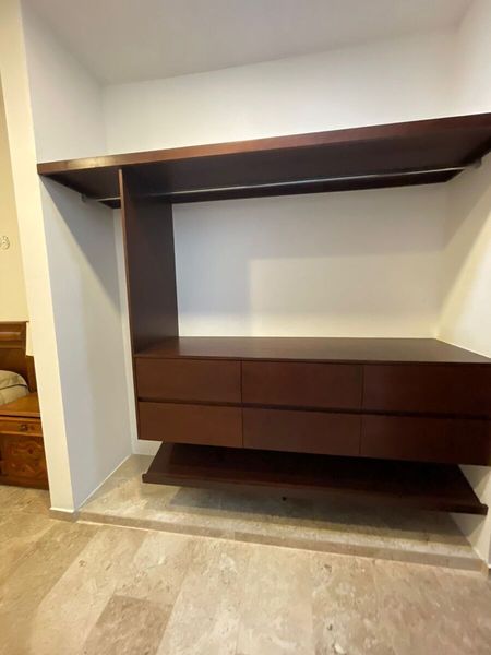Recamara con baño y closet, aire acondicionado y ventilador
