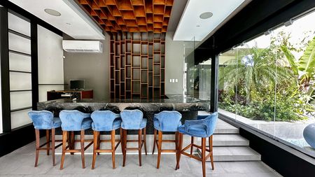 • Sala con área de bar y cine en casa
