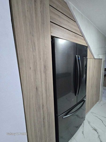 Pisos en porcelanatos y maderas finas en muebles empotrados y puertas .