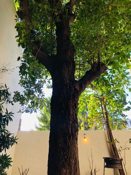 El comedor tiene vista a la terraza y a un espacio natural con dos grandes árboles que brindan gran tranquilidad y sombra.
