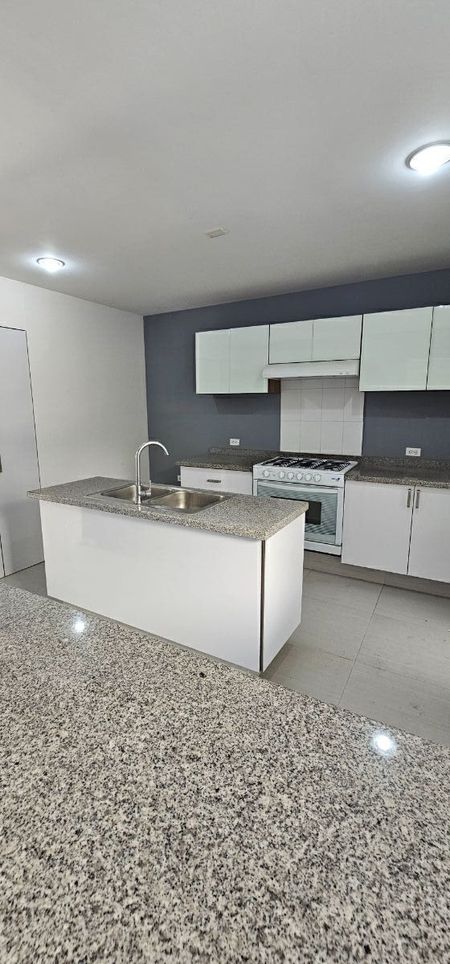 Esta amplia y espaciosas casa consta de tres amplias recámaras, la principal con baño completo y vestidor., dos recamaras secundarias con closet cada una, dispone de otro baño completo y medio baño, cocina integral con isla y cubierta de granito, alacena, área de servicio, terraza y jardín zen.