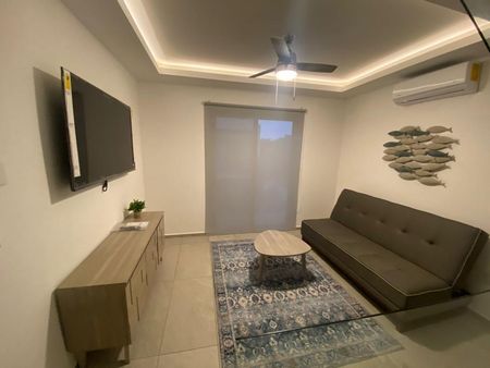 - Cocina integral equipada (con meseta de cuarzo y equipo de cocina: Horno, parrilla 6 quemadores y campana marca Mabe).