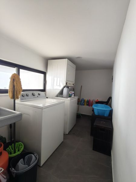 Cochera techada para dos autos con 2 conexiones para autos eléctricos, área de lavado, bodega amplia.