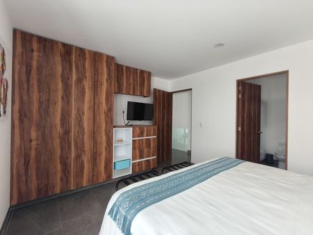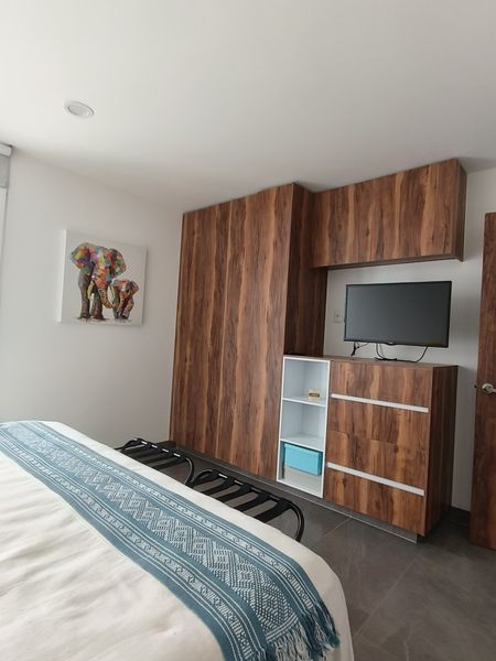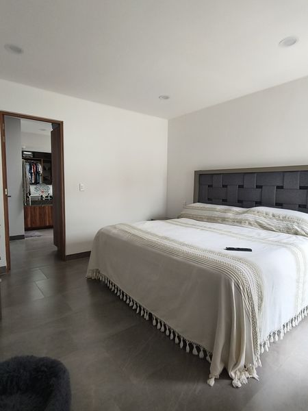 Habitación máster con vestidor walkincloset y baño equipado, puente con cristal templado, espacio para Home office, habitación secundaria con clóset y baño.
