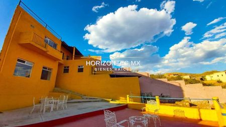 La propiedad cuenta con áreas al aire libre y una espléndida vista a La Bufa y Los Picachos. Está ubicada en el camino detrás de la CFE, sobre el Boulevard Guanajuato, cerca del restaurante Mariscos La Jaula. Terreno: 510 m²