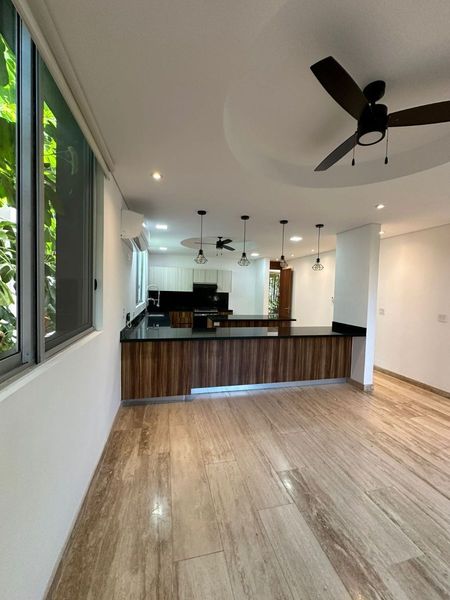 Cocina equipada : incluye gavetas inferiores, gavetas superiores, campana, estufa con horno, lavavajillas.