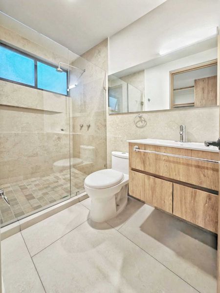 -Terraza con medio baño, área de guardado, tarja y vista a la avenida principal, con preparación para pantalla e internet