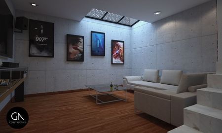 Sótano con espacio para cava, ideal para cine en casa o sala de juegos.