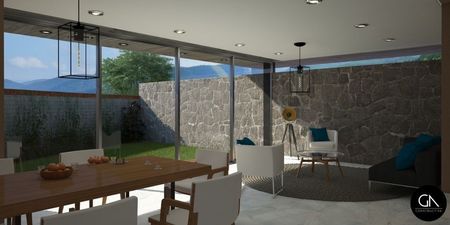 Sala, comedor , cocina amplia con isla, baño para visitas, cuarto de servicio , jardín, patio de servicio.