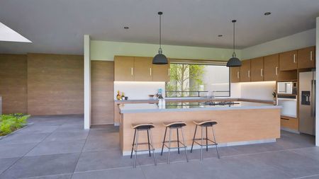 - Dos recámaras secundarias, cada una con vestidor y baño privado, garantizando privacidad y confort para los ocupantes.