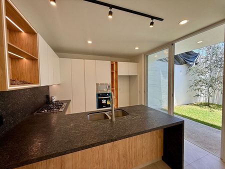 Altura libre piso a techo 2.70, pisos rectificados gran formato, preparación para aire acondicionado y panel solar. Cámaras de vigilancia en jardín y cochera. Cisterna de 5,000 lts con bomba sumergible, tinaco y tanque estacionario de gas.