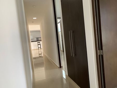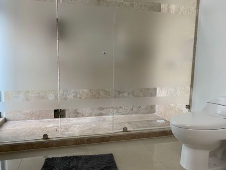 Tercer recámara con closet vestido, baño con cancelería de cristal, aire acondicionado, ventilador, mosquiteros y cortinas