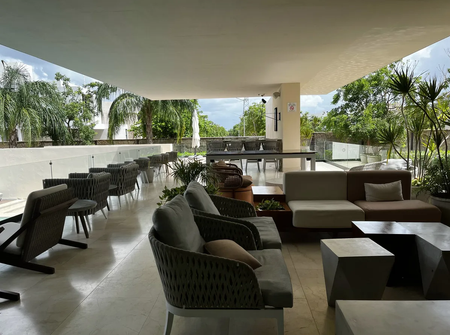 - Cocina integral equipada con equipo marca teka (horno de gas, parrilla, campana ) cubierta de cuarzo,tarja de acero inoxidable marca teka, monomando de teléfono.)