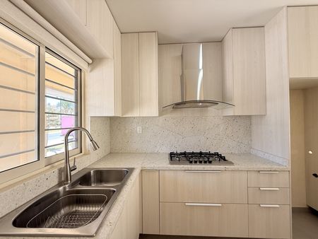 Cocina integral con tarja doble, estufa de 5 quemadores y campana extractora